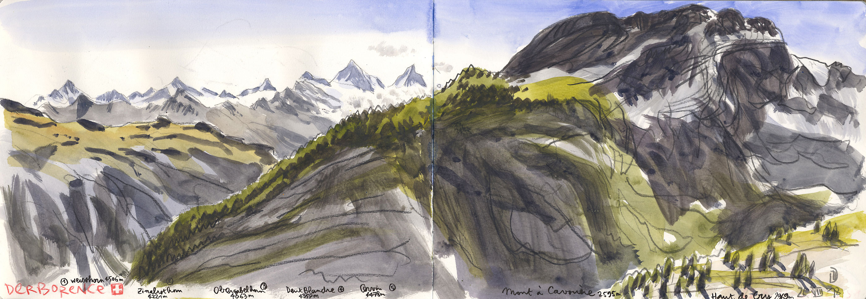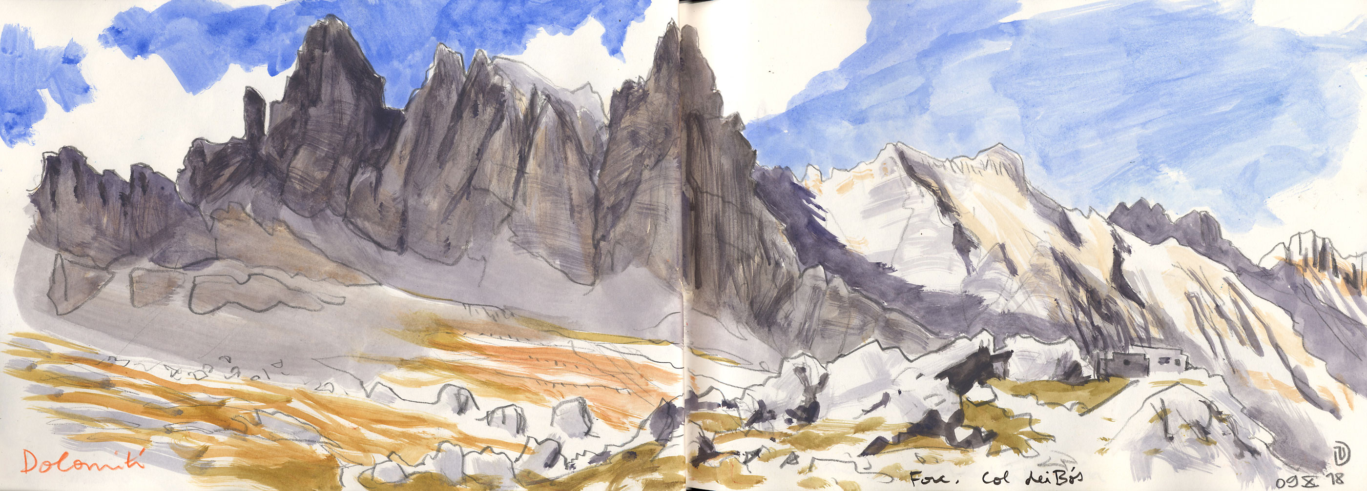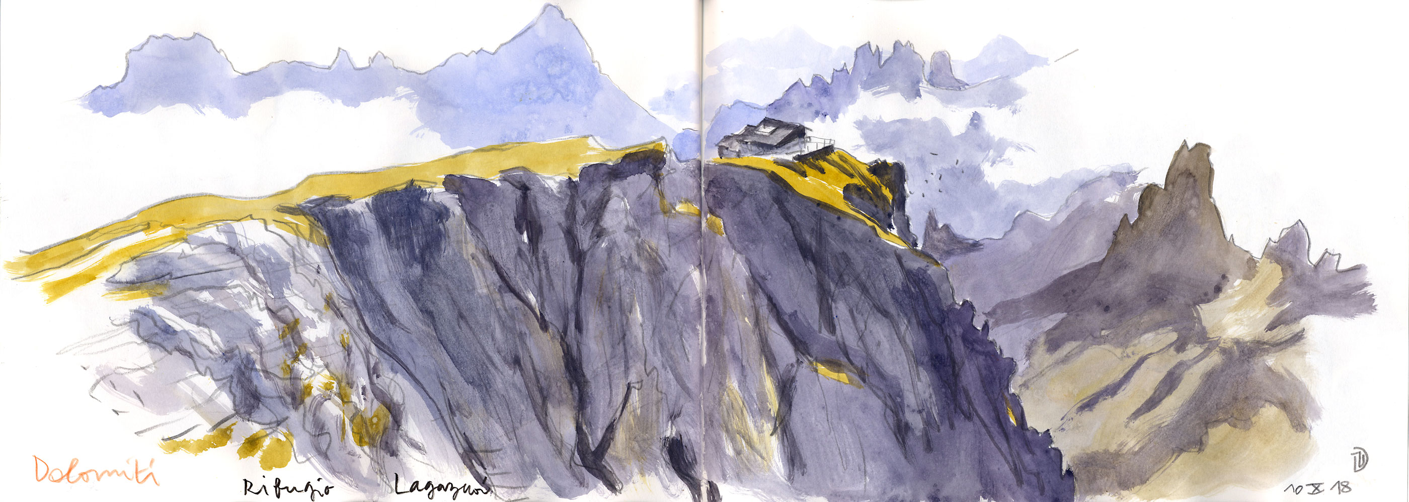 - der Berg erweist sich als der perfekte Ort, um alle Grundlagen des Skizzierens zu lernen oder zu verbessern: Beobachtung, Analyse, Raum, Komposition, Linienarbeit, Volumen, Licht, Strukturen