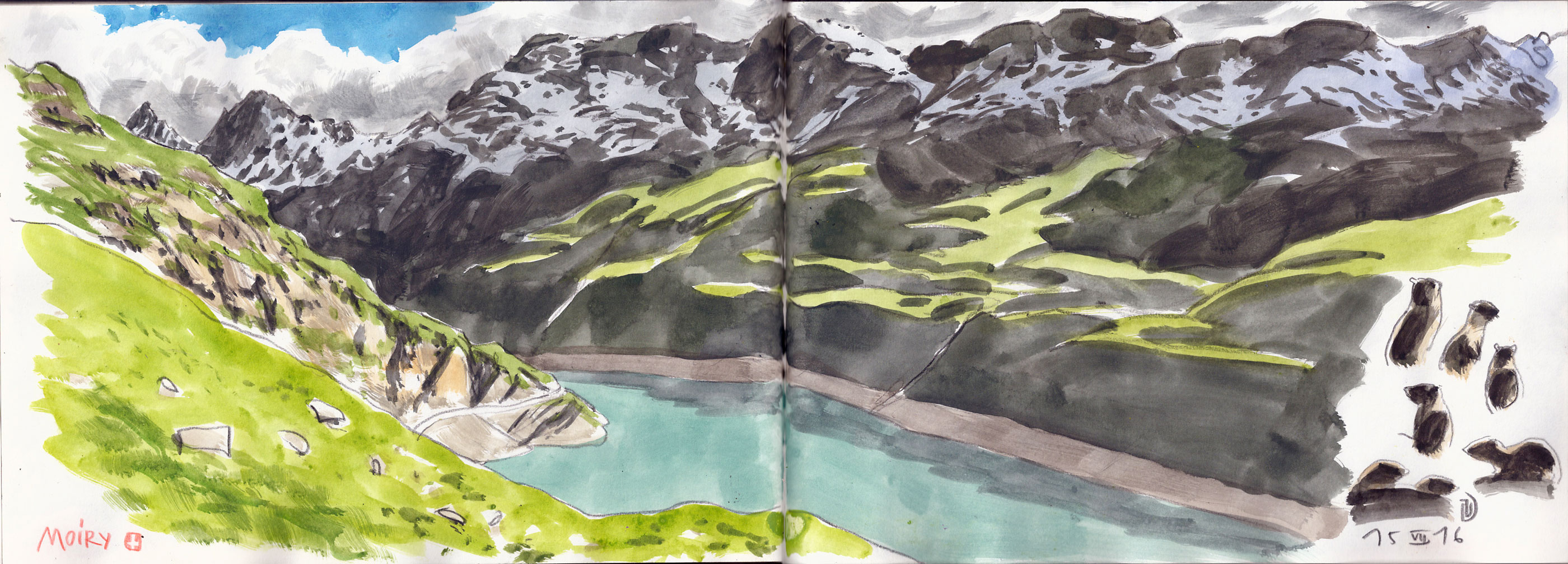 - Skizzieren ausserhalb der Komfortzone: in einer unbequemen Position, mit der Müdigkeit des Spaziergangs, einem turbulenten Wind, einer brennenden Sonne