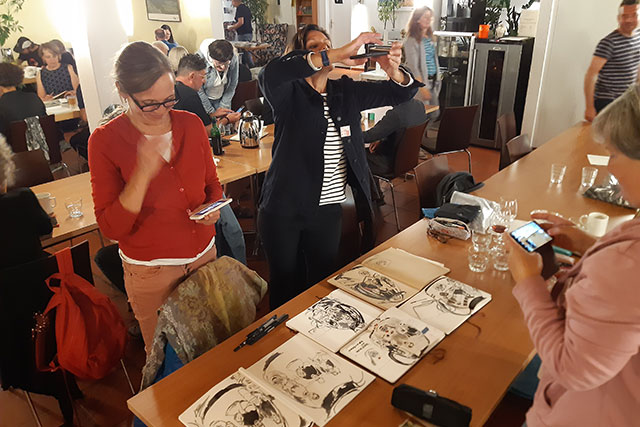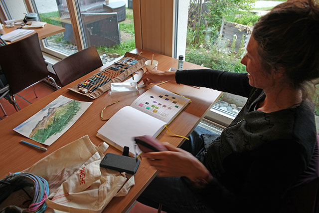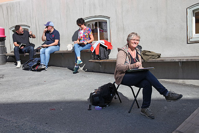 Die Stimmung war wunderbar. Von morgens bis abends wurde gezeichnet – im Dorf, im Castell, im Café und nach dem Nachtessen ging es gleich weiter mit Zeichnen im Gästehaus Convict.