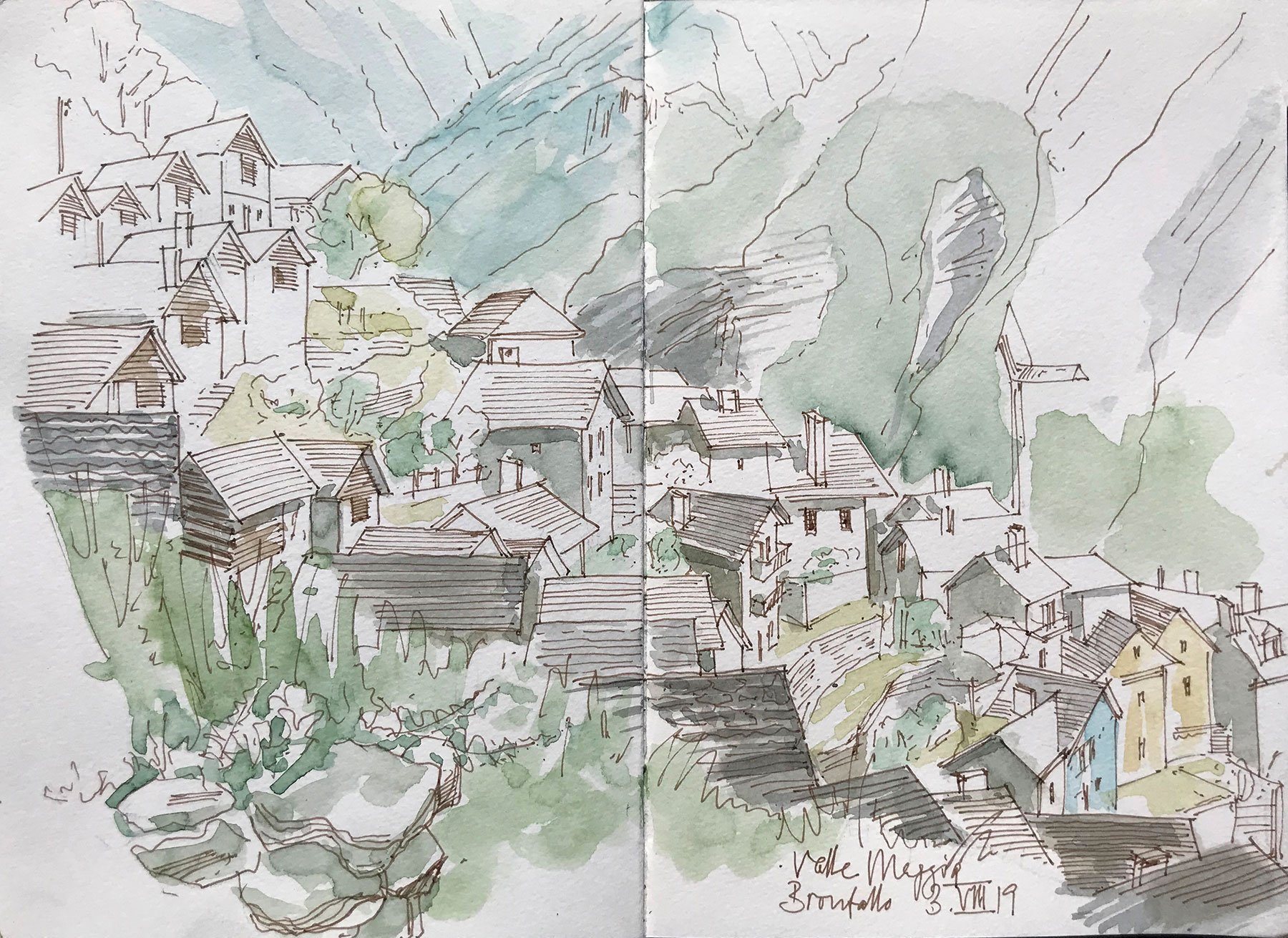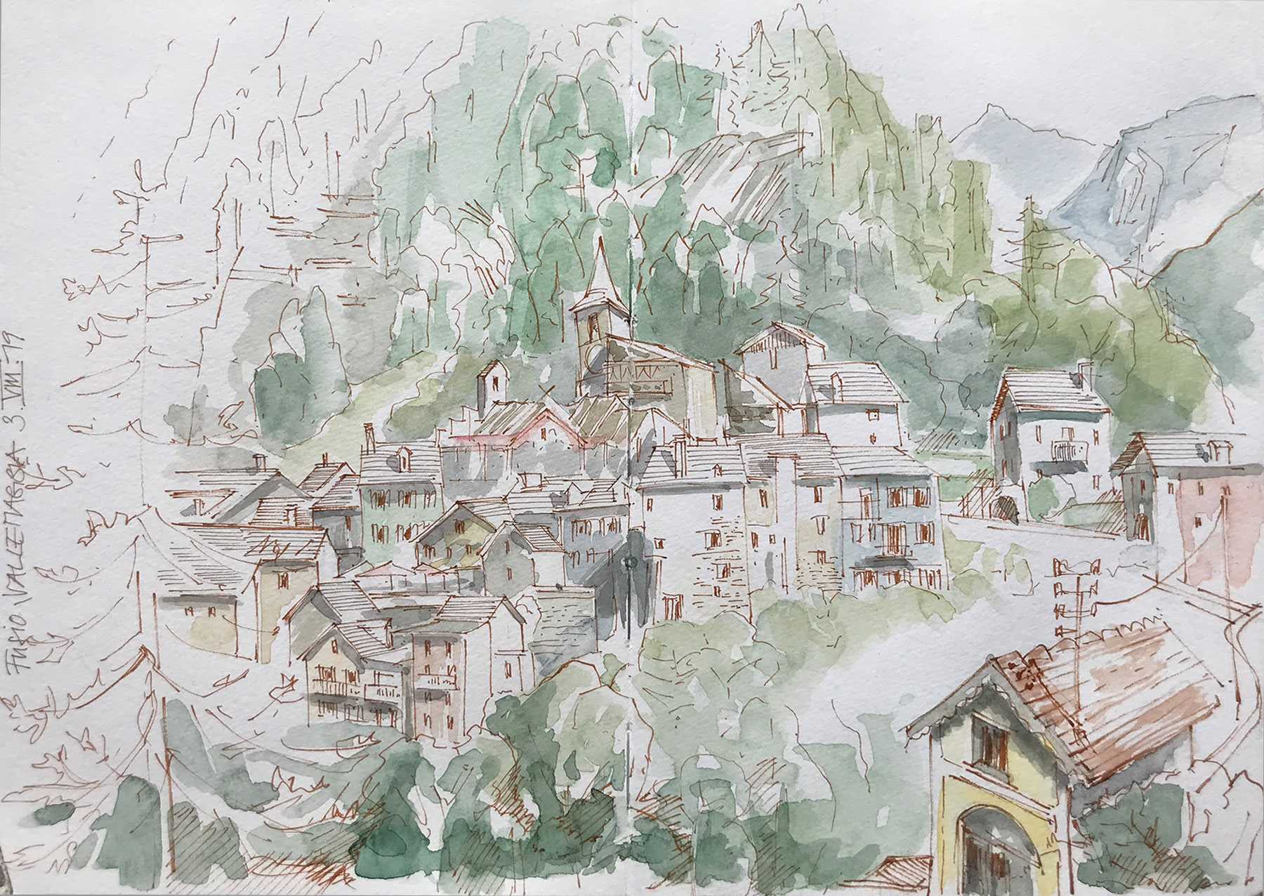 Croquer Zuoz et ses environs avec des crayons de couleur et un carnet
