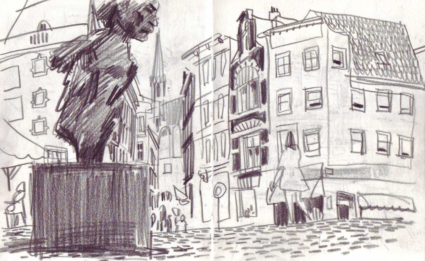 Gebäude, Bäume, Autos, Menschen, Verkehrsschilder... die typische Stadtlandschaft ist visuell komplex und vielfältig. Können wir all diese Details in einer Zeichnung erfassen? Zum Glück müssen wir das nicht. Durch Reduktion und Vereinfachung können wir die Geschichte erzählen, die für uns wirklich wichtig ist. Ziel dieses Workshops ist es, unsere Unsicherheiten beim Zeichnen komplexer Szenen zu überwinden. Wir üben verschiedene Kompositionsregeln und lernen, die visuellen Elemente zu identifizieren, die die wichtigsten Informationen mit der geringsten Anzahl von Linien einbringen. Mehrere kurze Übungen werden uns erlauben, den Ort aus verschiedenen Blickwinkeln zu erkunden.