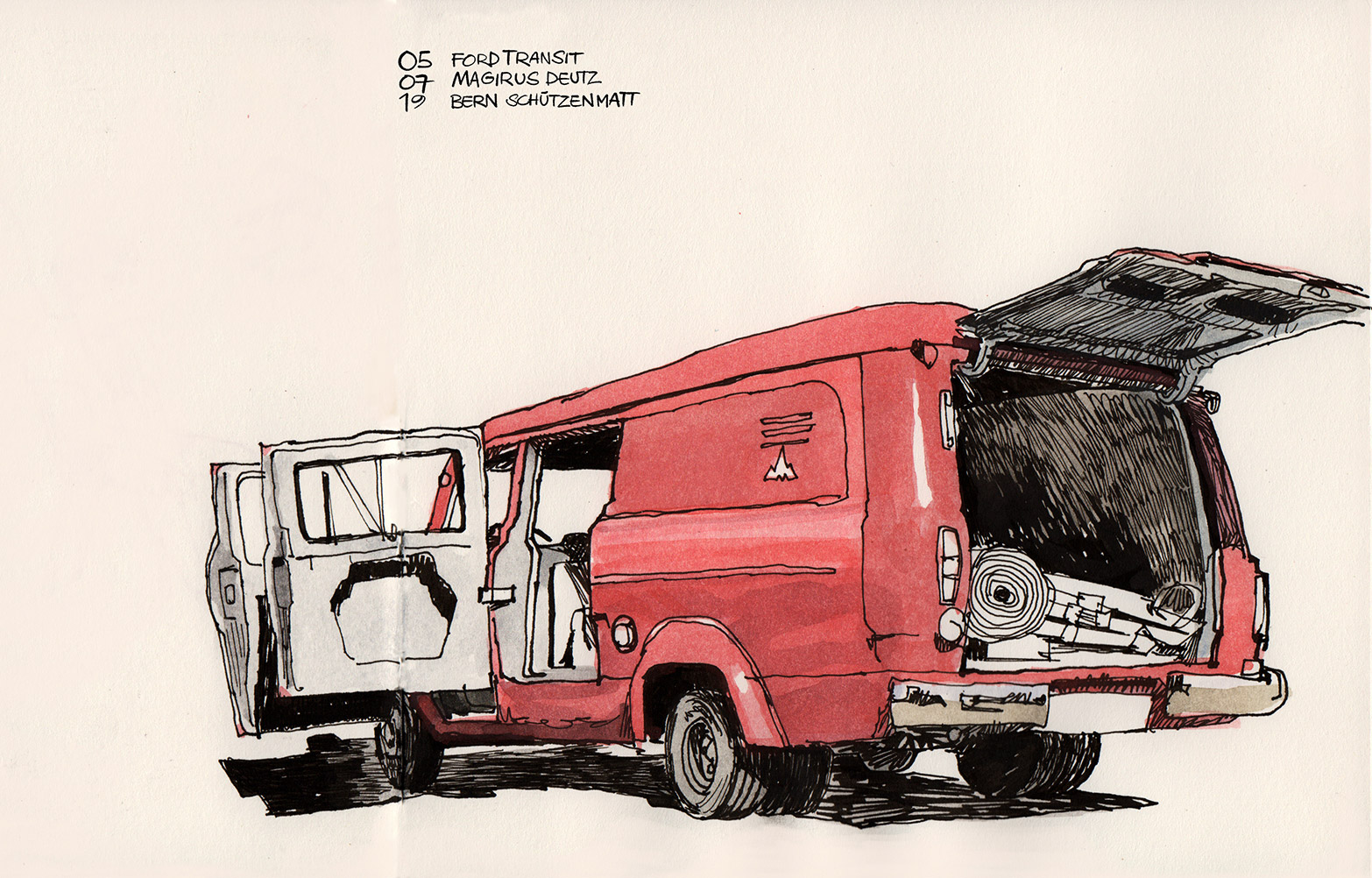 Seit 2005 selbstständiger Illustrator und Grafiker. Sucht seither immer mehr wieder den analogen Ausgleich beim Zeichnen auf Papier. Entdeckt die Umgebung durch die zeichnerische Optik immer wieder neu. Unterrichtet seit 2016 Urban Sketching an der Schule für Gestaltung Bern. Fährt lieber Fahrrad als Auto, zeichnet lieber Autos als Fahrräder.