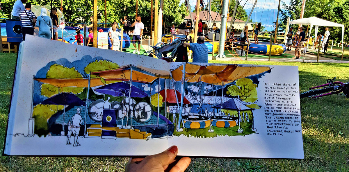 Brindarica Bose est suisse, d’origine indienne. Elle travaille à temps partiel dans l’édition et comme enseignante en art à l’École Club Migros. Pour elle, le croquis urbain est comme raconter des histoires. Elle a publié un livre, « Sketching Diaries », avec quatre autres artistes suisses en 2020. Ses dessins sont colorés et, bien que l’aquarelle soit son premier amour, elle aime mélanger crayons, stylos, craies grasses et tout ce qui lui tombe sous la main. Son style est « rapide et spontané » pour capturer l’essence d’une scène.