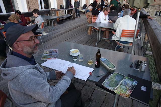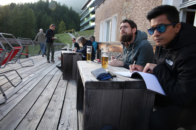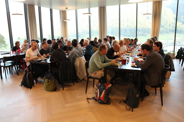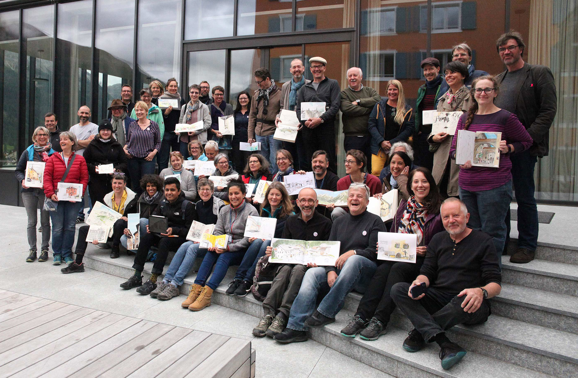 Group photo on Sunday noon on the terrace of the dining room of the Lyceum Alpinum.