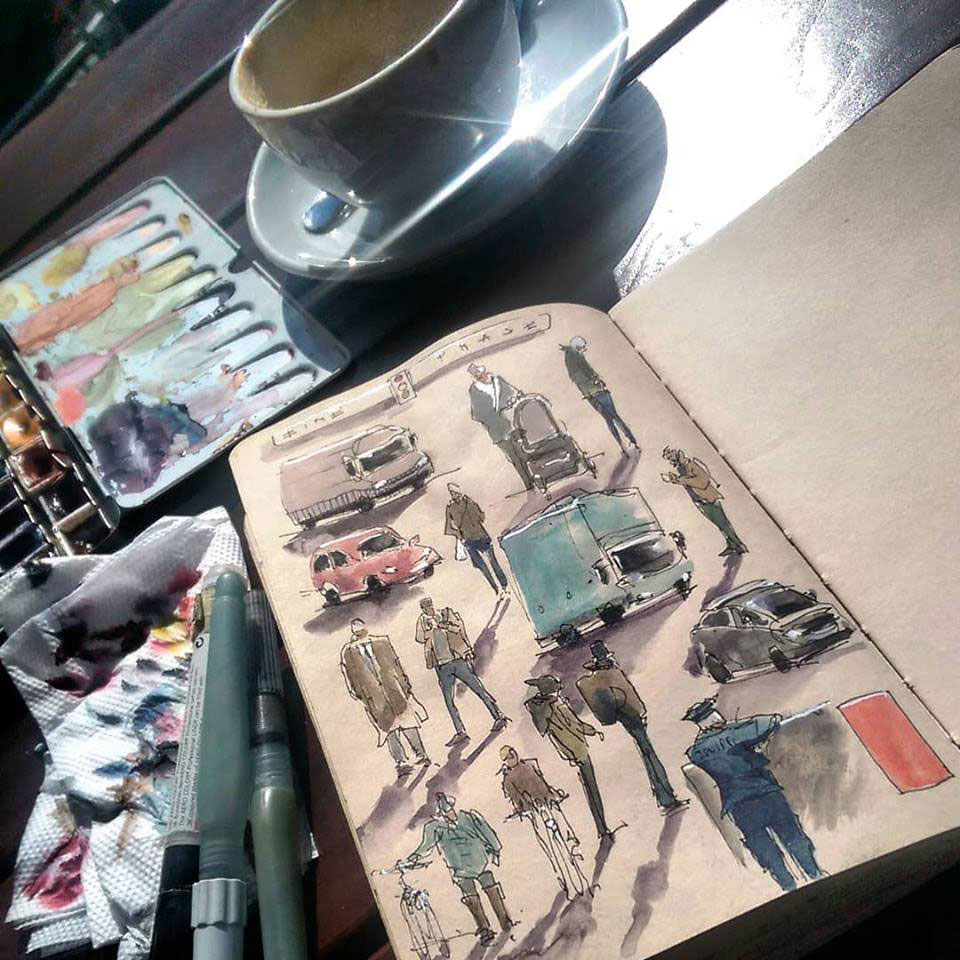Gris is a painter/sketcher from Berlin. He is also a lecturer at Artistravel and Ambassador at Schmincke and DaVinci. He and his courses are known for beeing a good mix of knowledge transfer and entertainment.
