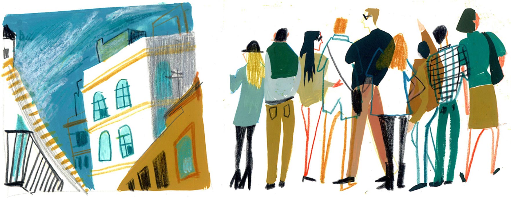 This workshop is focused on gouache technique for urban sketching, combining the use of other materials, such as colored pencils, graphite pencil and crayons. The use of different materials allows to offer vibrant drawings and amazing textures. The goal is to use layers of gouache paint and add details, strokes and textures with other materials on top.
