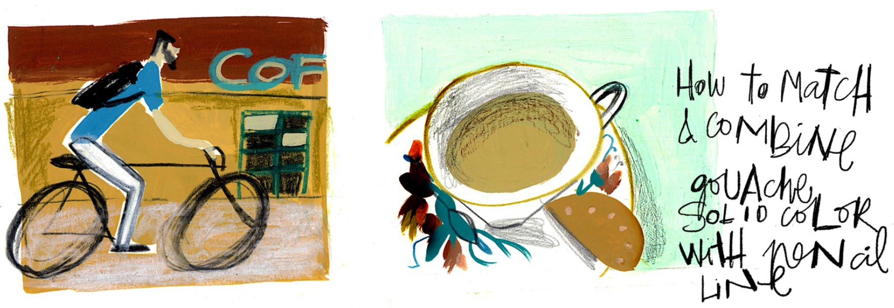 - Learn about how to use gouache paint in layers and mixing dry techniques such a color pencils, fatty crayons, graphite pencil, etc.