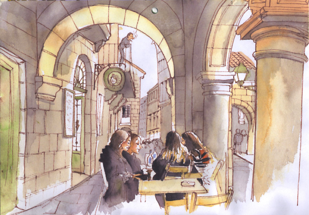Sketching people sitting at a café table is made easier by a few factors: they won't move for a while, they are relaxed and unlikely to notice you and you only have the top half to draw! There are always interesting things to draw on the tables, and just a few poses will cover most people. By breaking the scene into planes, starting in the foreground and working backwards, you will take each line step by step. In this workshop we will look at poses, proportions, hair and and skin tones, and you will gain confidence for capturing people out and about.