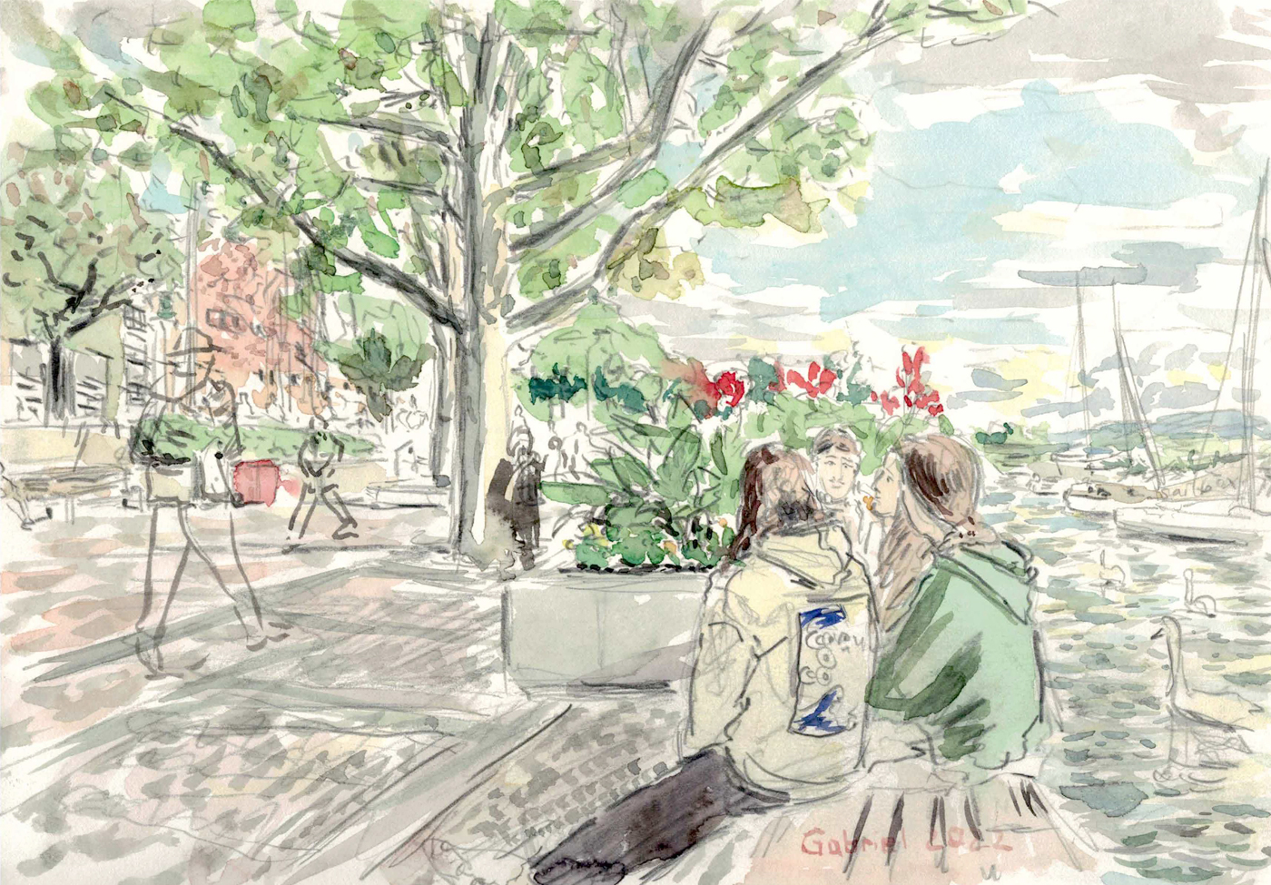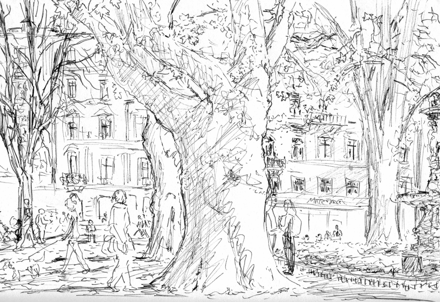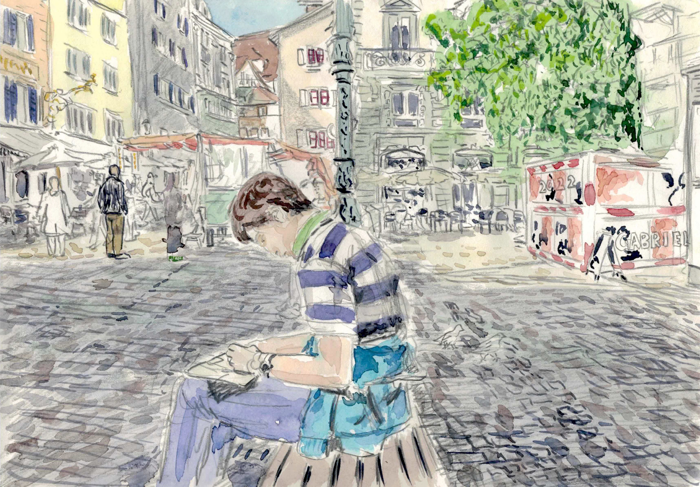 We will sketch in the old town (Altstadt) of Zurich. In this course you will learn the basics of sketching or you can deepen your knowledge. Through many quick exercises at the beginning of the workshop you will become loose in dealing with perspective and learn to quickly grasp the rough proportions. We will draw street lines, bridges, houses, churches, trees, cafes and whatever catches your eye. In particular, we will practice drawing people in public places and on the streetcar. People bring your drawings to life. If you ask nicely, most people are happy to be drawn. :-)