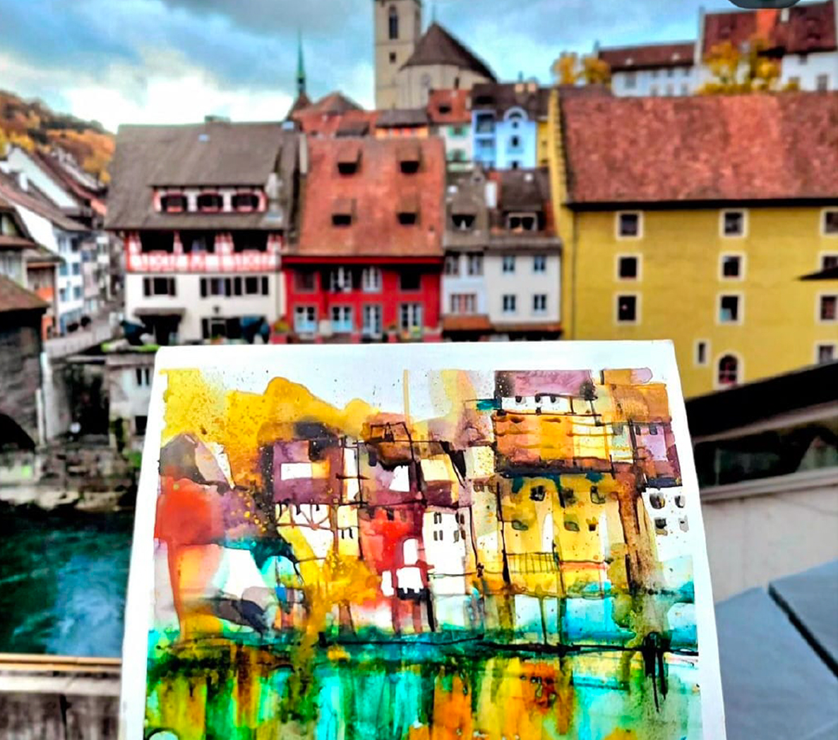 Brindarica Bose (Brinda) ist seit 30 Jahren eine leidenschaftliche Urban Sketcherin. Sie wurde in Indien geboren und lebt seit fast zwei Jahrzehnten mit ihrer Familie in der Schweiz. Seit 9 Jahren arbeitet sie Teilzeit als Kunstlehrerin an der Migros Klubschule (Miduca) und gibt Kurse für Aquarellieren, Urban Sketching und Freihandzeichnen. Sie wurde als Workshop-Leiterin für das Swiss Urban Sketchers Symposium 2021 und 2022 ernannt. Brinda liebt es, ihre Zeichnungen mit intensiven Farben aufzupeppen und "unterwegs" zu skizzieren. Ihr Lieblingsmedium sind Aquarellfarben. Sie nimmt ihre Farben und ihr Papier mit in den Schnee, ans Meer und in den Sand und arbeitet am liebsten in einem "lockeren Stil" und skizziert "schnell", wann immer sie die Gelegenheit dazu hat. Brinda liebt es, ihre Leidenschaft für Urban Sketching zu lehren und zu teilen und unterrichtet freiwillig Kunst für Flüchtlinge beim Integrationsamt in Wohlen und für benachteiligte Kinder (online, mit der Robin Hood Academy, Indien). Sie ist auch Autorin und Verlegerin.