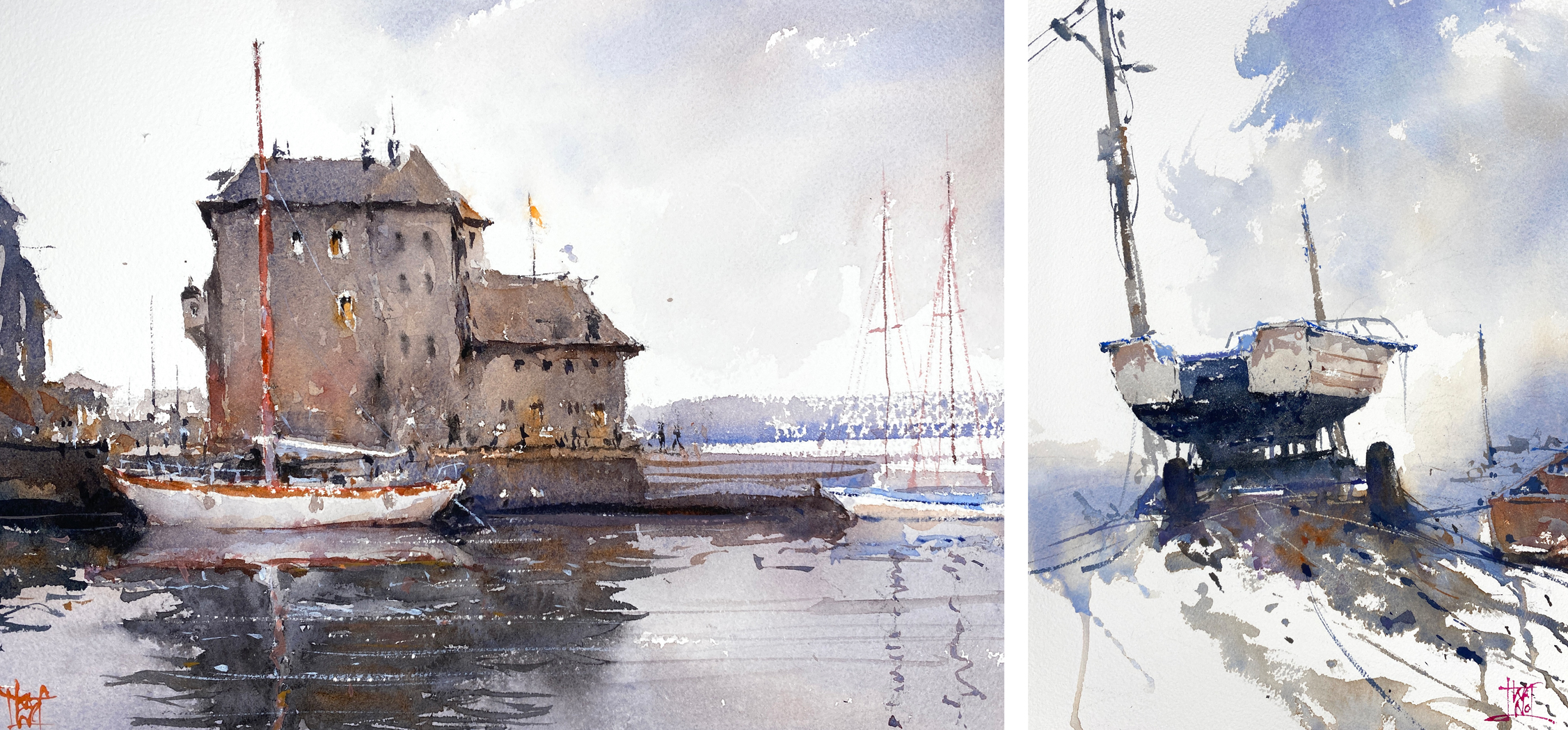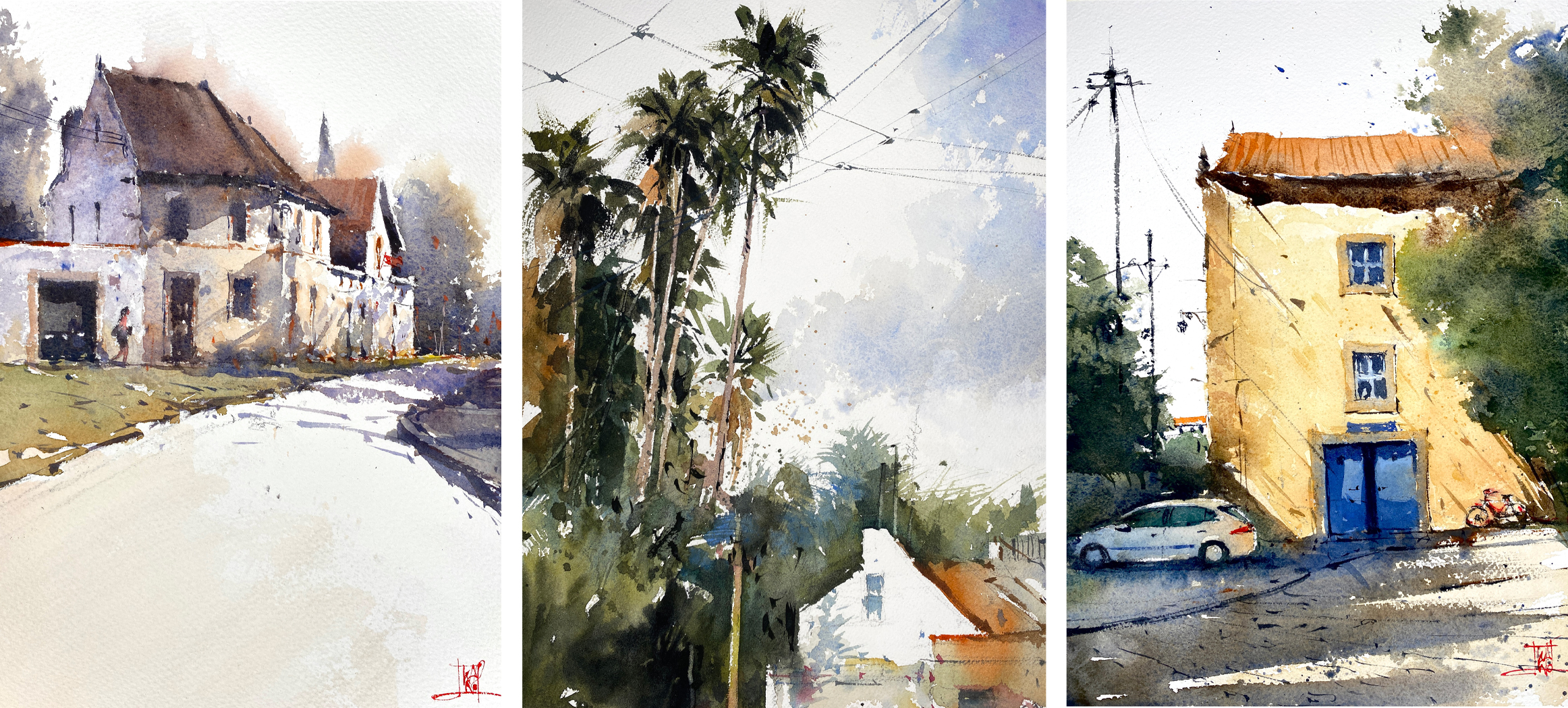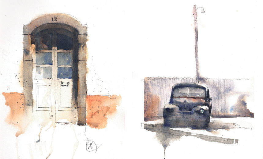"Mein Leben als Aquarellist begann vor 5 Jahren zunächst als urbaner Skizzenzeichner. Es war eine Zeit der Entdeckungen und Verbesserungen, bis ich dort ankam, wo ich heute bin. Durch das Zeichnen von Stadtgebieten habe ich viel von dem gelernt, was ich heute in meinen Aquarellen anwende, und ich denke, dass diese beiden Aspekte eng miteinander verbunden sind. Ich beabsichtige, diese Verbindung zu nutzen, um eine noch intensivere Verschmelzung zu erreichen."