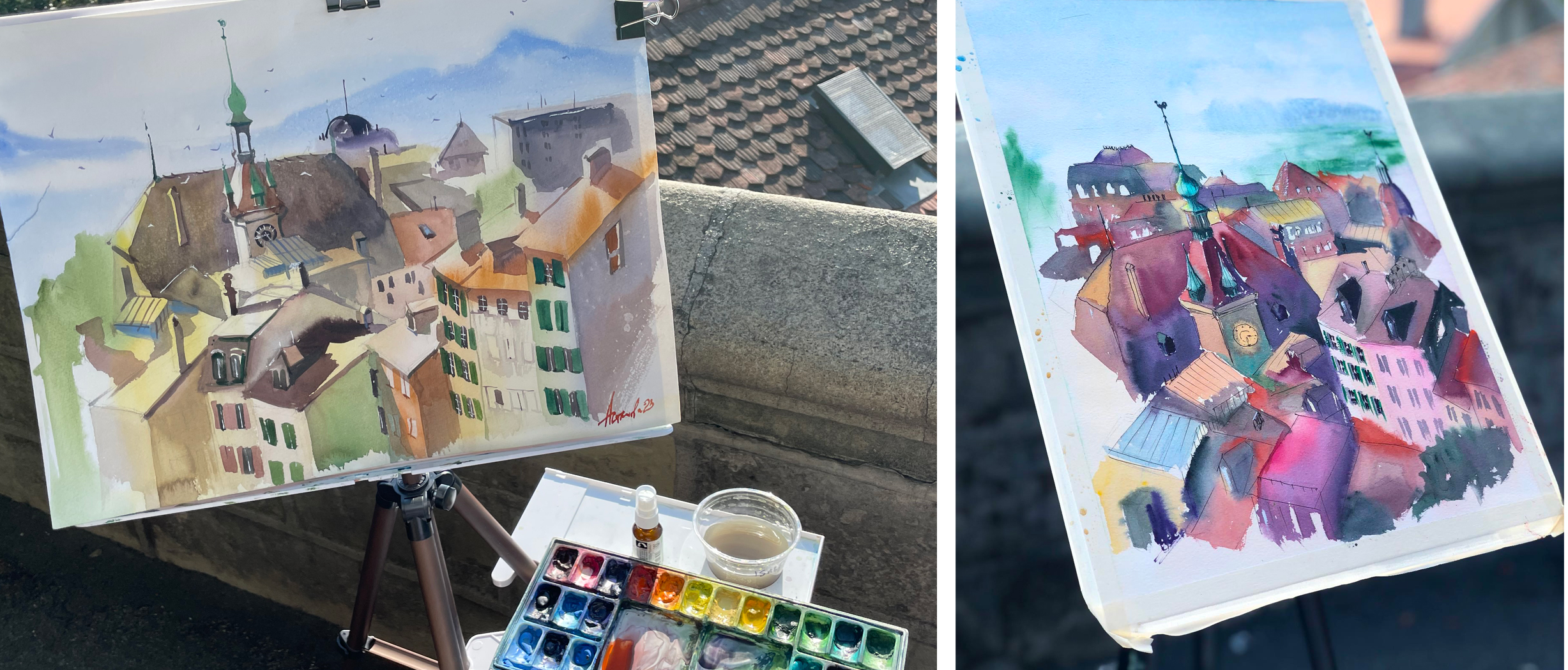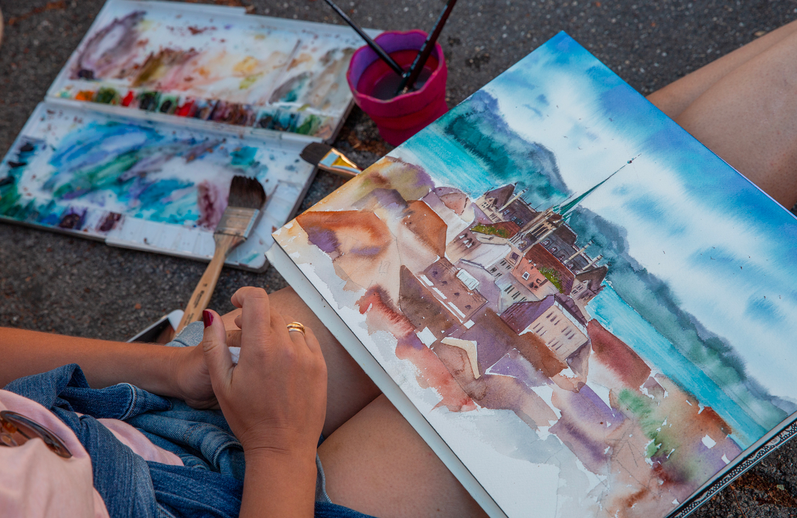 Während des Workshops werden wir eine Technik zur Darstellung einer Panorama Stadtlandschaft in Aquarell studieren und jeder Teilnehmer wird den Workshop mit einem fertigen Kunstwerk abschließen, unabhängig vom Niveau der Vorbereitung. Wir werden über die Perspektive sprechen (linear und aus der Luft). Wir lernen Wirkungen, Kompositionen, Schattierungen und Schatten malen, sowie das Finden des Brennpunkts und das Erzeugen von unscharfen Effekten erlernen. Wir werden lernen, die Details zu vereinfachen und die Farben zu verbinden, um ein harmonisches Kunstwerk zu schaffen.