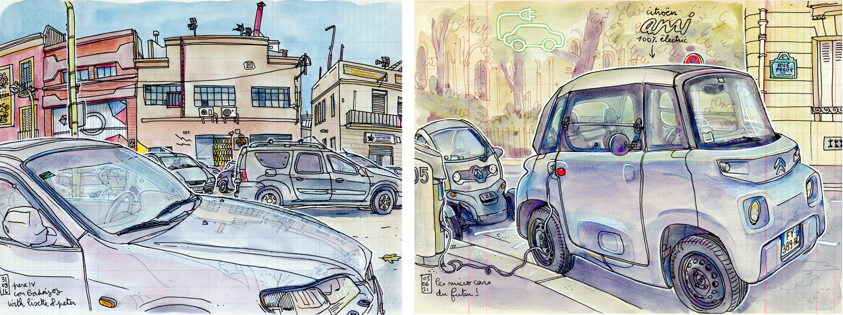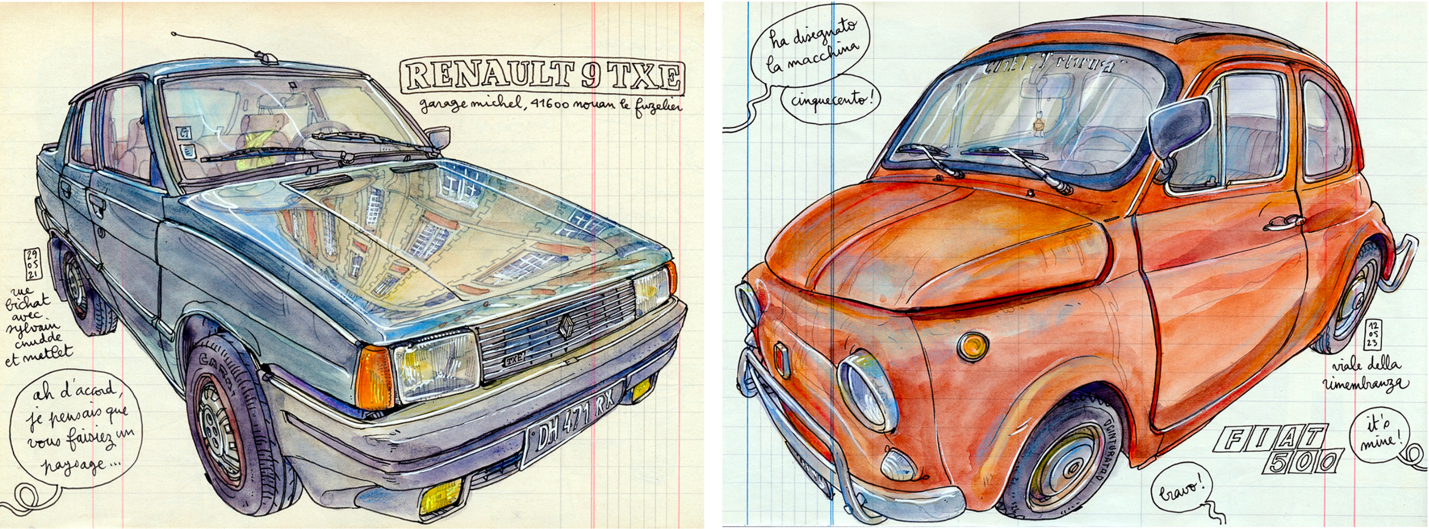 Ein Auto zu zeichnen ist oft einschüchternd. Dennoch ist es ein allgegenwärtiges Thema in unseren Stadtlandschaften. Zunächst werden wir ein "Porträt" eines Autos zeichnen, wobei wir zeigen, wie wichtig die Entfernung ist, aus der wir das Auto wahrnehmen, und eine detaillierte Zeichnung anfertigen, indem wir uns weniger als einen Meter vom Auto entfernt hinsetzen, um ihm eine "Fisheye-Sicht" zu verleihen. Anschließend integrieren wir das Auto in eine städtische Umgebung, indem wir es als Vordergrund verwenden und mit den Spiegelungen auf der Karosserie spielen. Am Ende dieses Workshops werden die Teilnehmer keine Angst mehr davor haben, ein Auto zu skizzieren, auf die Gefahr hin, dass sie süchtig nach dieser Übung werden...