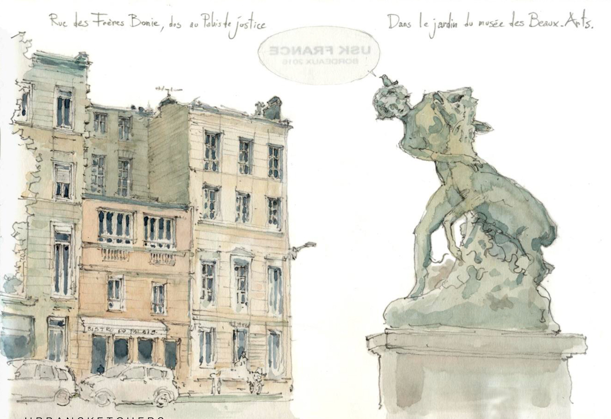 Trained as an architect in Belgium at the Saint-Luc school in Liège, I've been giving drawing lessons for the past 10 years. A great fan of observational drawing, I fill many sketchbooks with memories of places and the people who live there. As a member of Urban Sketchers, I regularly take part in meetings around the world.